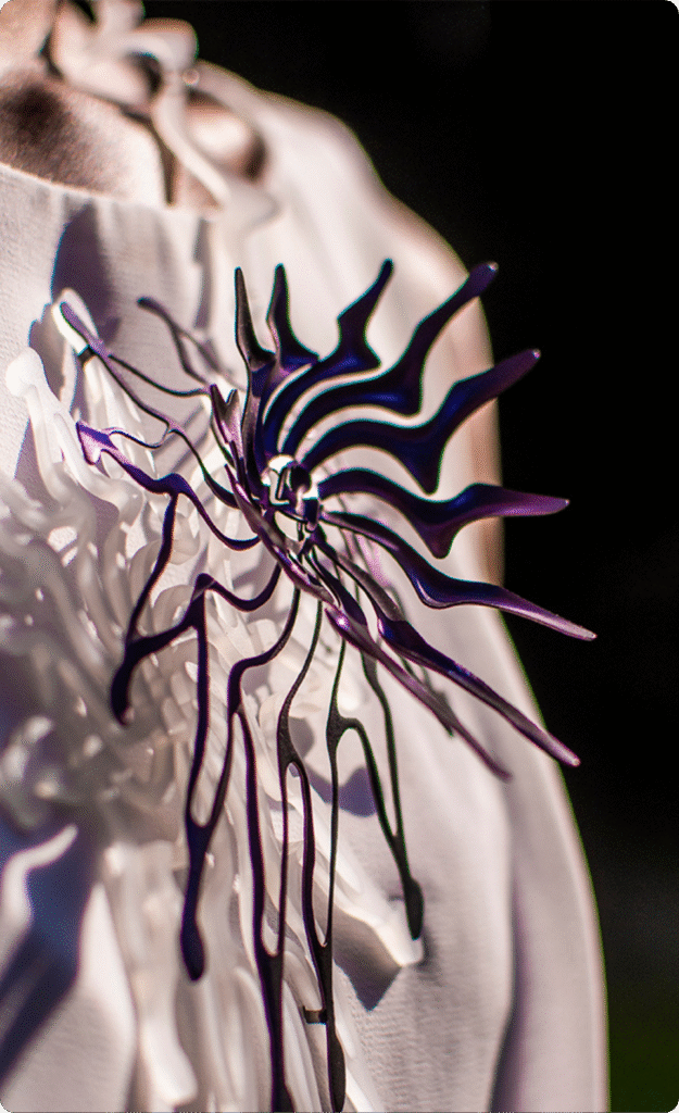 Use of patterns, textures, and structures from plants, flowers, and insects, giving each piece an organic and vibrant character.